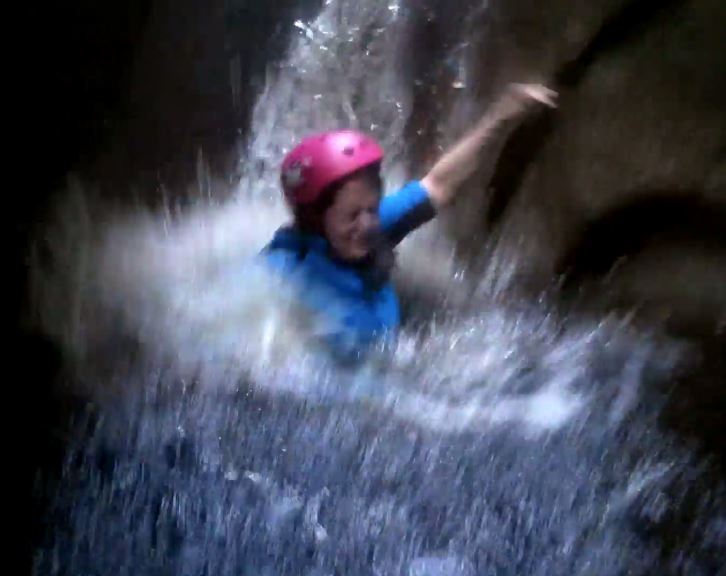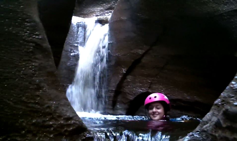 Shortly afterwards, you come to (arguably) the most fun part – a good dunking. The stream cuts down and options run out as it plunges a couple of metres into a deep pool. It’s not daunting, but depending on the water temperature your brief underwater excursion might take your breath a little.